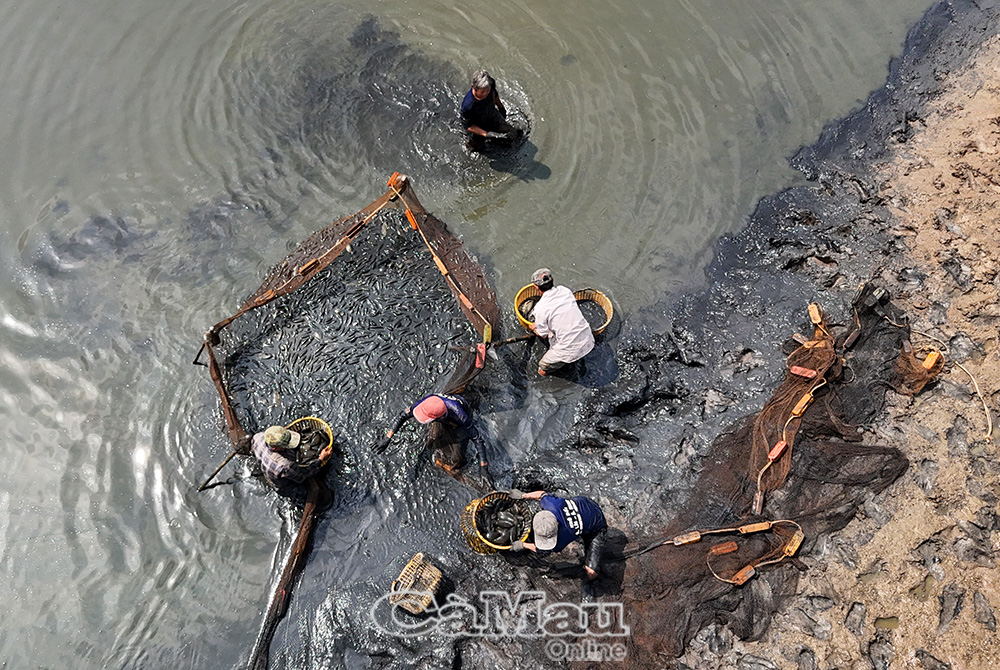 Thu hoạch cá bổi tại Ấp 7, xã Khánh Bình.