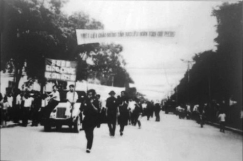 Quân, dân và các ban, ngành trong tỉnh tiến vào thị xã Bạc Liêu. Ảnh: T.L