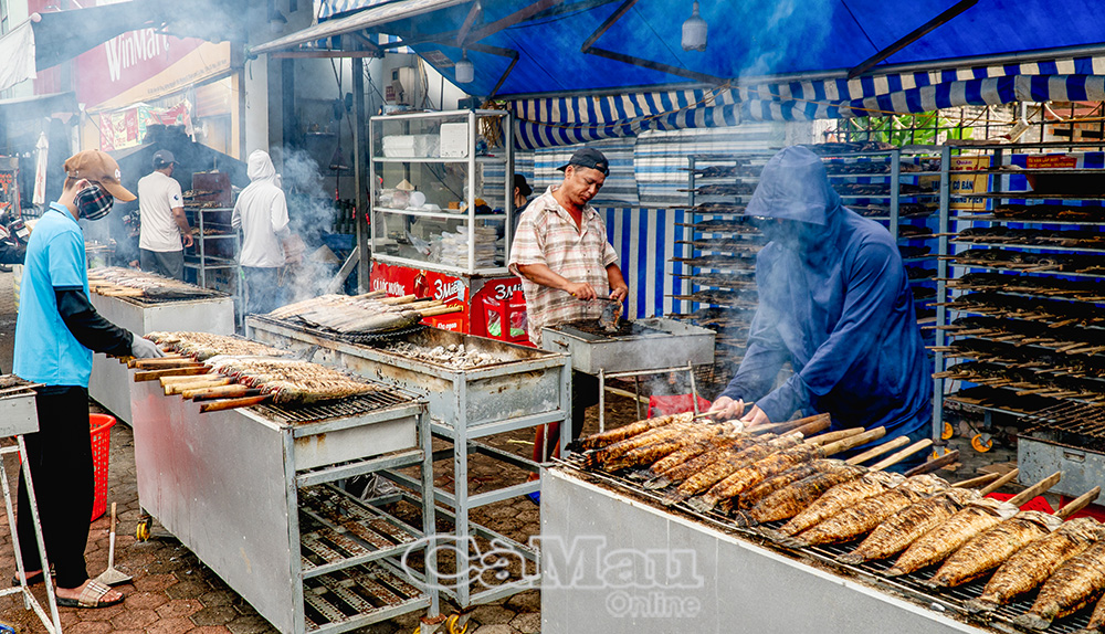 Tại “phố” cá lóc nướng ở phường An Xuyên, không khí mua bán diễn ra sôi động từ sớm. Quán cá lóc nướng Nam Đào đã chuẩn bị khoảng 500 con cá phục vụ khách, giá giữ ổn định 150.000 đồng/con. Dù sức mua năm nay có phần giảm, nhiều người dân vẫn chọn cá lóc nướng để làm lễ vật quen thuộc trong mâm cúng Thần Tài.