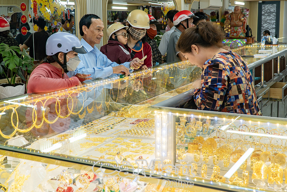 Người dân đi sắm vàng cầu mong nhiều điều may mắn trong năm mới.