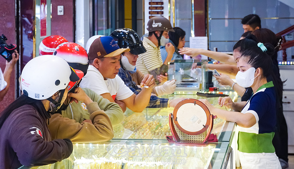 Nhiều khách hàng đến Tiệm vàng Thành Trung mua nhẫn, mua vàng thần tài.