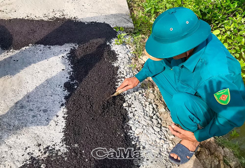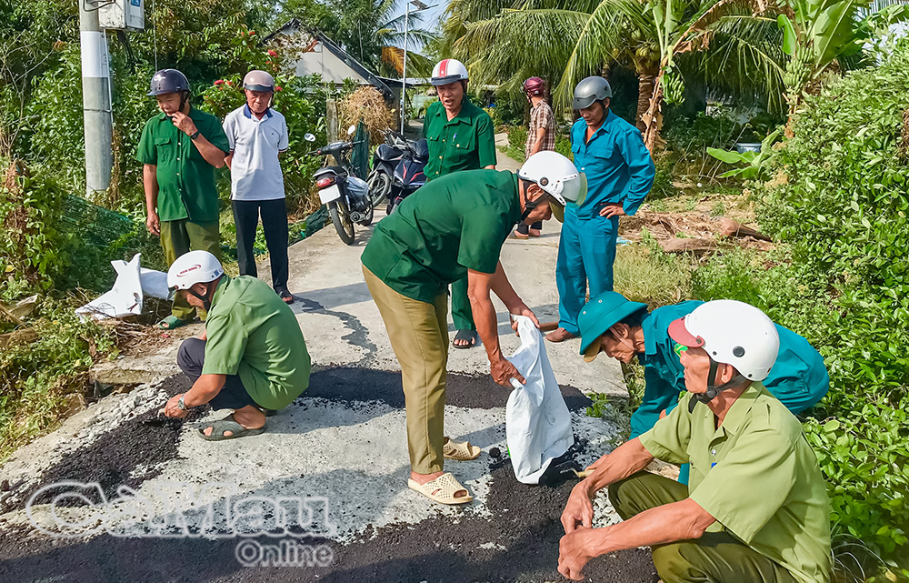 Những ngày cận Tết, các ấp tập trung dặm vá “ổ gà”, thảm nhựa những đoạn mặt đường bong tróc; gia cố, nâng cấp các vị trí cống, đoạn lộ bị sụp lún do ảnh hưởng của việc lấy nước nuôi tôm.