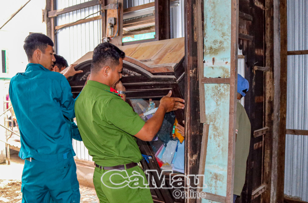 Tuổi trẻ lực lượng vũ trang phường Vĩnh Trạch hỗ trợ người dân thực hiện xoá nhà tạm, nhà dột nát.