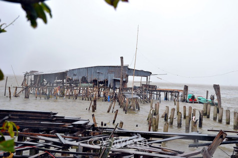 | Đây là 1 trong 14 căn nhà bất chấp nguy hiểm sống ngoài rìa xóm đảo, Khóm 6B, thị trấn Sông Đốc. |
