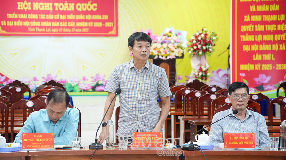 Đồng chí Nguyễn Nam Phong, Phó Trưởng Ban Tuyên giáo và Dân vận Tỉnh uỷ Cà Mau, biểu dương những kết quả mà Đảng uỷ xã Ninh Thạnh Lợi đã đạt được, nhất là trong phát triển kinh tế hộ gia đình. Đồng chí đề nghị xã tiếp tục đổi mới mạnh mẽ hơn nữa phương thức tuyên truyền, quán triệt các nghị quyết của Bộ Chính trị theo hướng linh hoạt, dễ tiếp cận; đẩy mạnh ứng dụng nền tảng số và mạng xã hội nhằm lan tỏa nội dung đến cán bộ, đảng viên và Nhân dân.