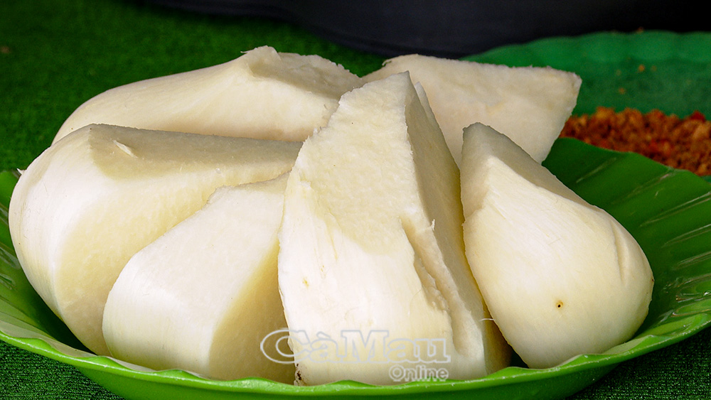 Sắn nước có thịt trắng đục, nhiều nước, vị ngọt và giòn, thường được dùng làm món ăn giải khát trong mùa nắng nóng.
