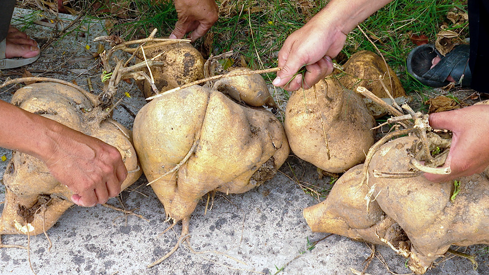 Sắn nước vốn thích nghi với những vùng đất cồn cát, nhưng củ sắn phát triển to đến mức nói trên là điều hiếm gặp.