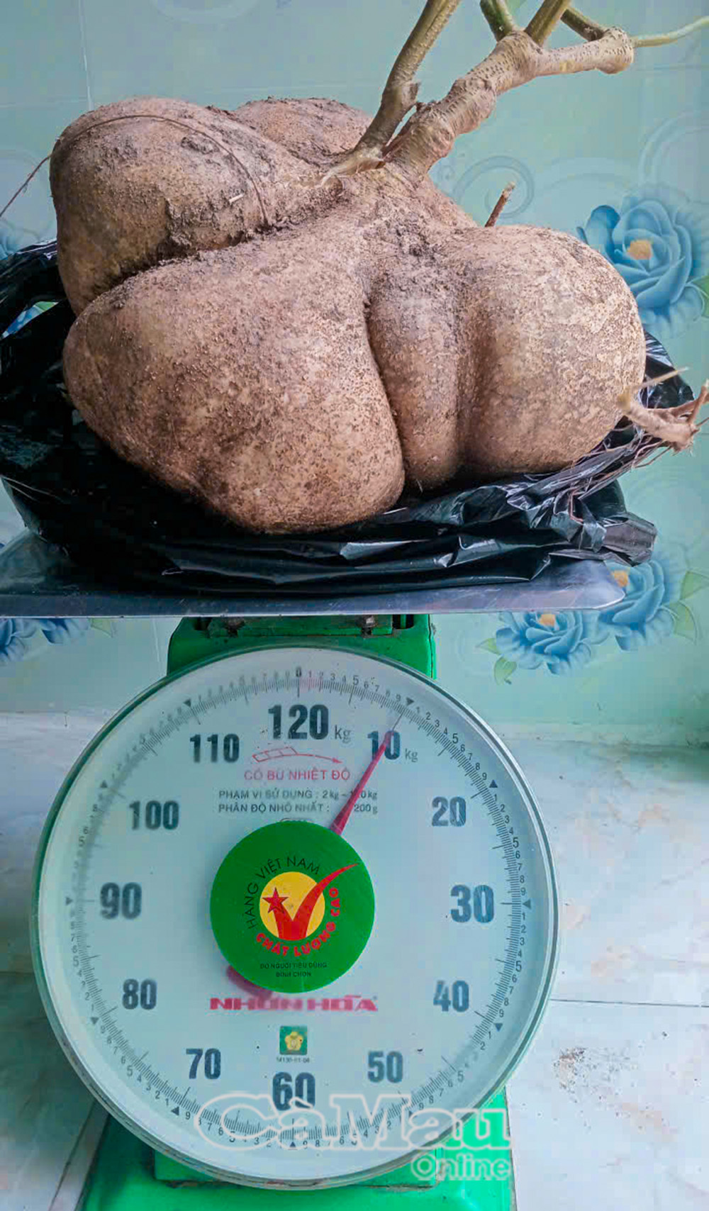 Mới đây, một nông dân ở ấp Nhụy Cầm, xã Vĩnh Lộc, tỉnh Cà Mau đã thu hoạch được một củ sắn nước nặng tới 10 kg và nhiều củ có trọng lượng từ 5-7 kg. Kết quả này khiến nhiều người trồng sắn tại địa phương không khỏi bất ngờ, bởi trước nay họ chưa từng thấy củ sắn nào đạt kích thước lớn như vậy.