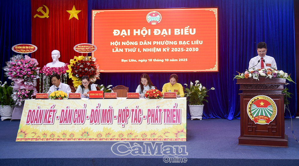 Báo Cà Mau Sáng 18/10, Đại hội đại biểu Hội Nông dân phường Bạc Liêu lần thứ I, nhiệm kỳ 2025-2030 tổ chức với phương châm hành động “Đoàn kết - Dân chủ - Đổi mới - Hợp tác - Phát triển”.
