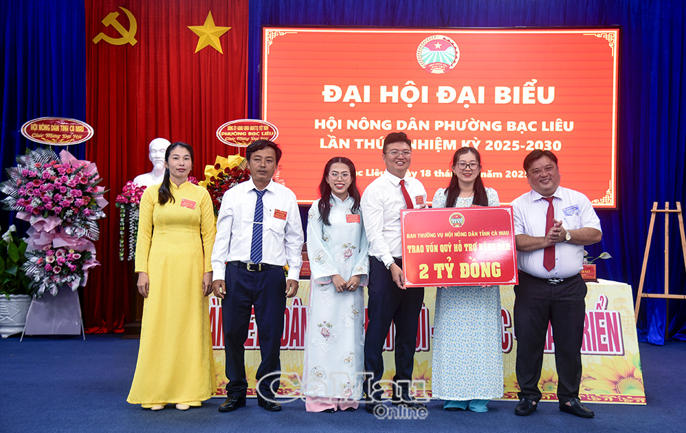 Dịp này, Ban Thường vụ Hội Nông dân tỉnh trao 2 tỷ đồng từ nguồn Quỹ Hỗ trợ nông dân cho Hội Nông dân phường Bạc Liêu nhằm tiếp sức cho hội viên phát triển sản xuất, mở rộng mô hình kinh tế hiệu quả.