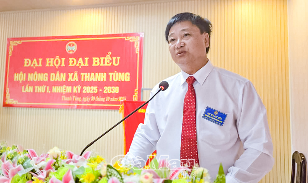 Báo Cà Mau Ngày 30/10, Phó Chủ tịch UBND tỉnh Huỳnh Chí Nguyện đến dự Đại hội đại biểu Hội Nông dân xã Thanh Tùng lần thứ I, nhiệm kỳ 2025-2030. Dự và chỉ đạo Đại hội có ông Nguyễn Hoàng Thoại, Chủ tịch Hội Nông dân tỉnh; cùng 70 đại biểu đại diện cho hơn 1.500 hội viên nông dân toàn xã.