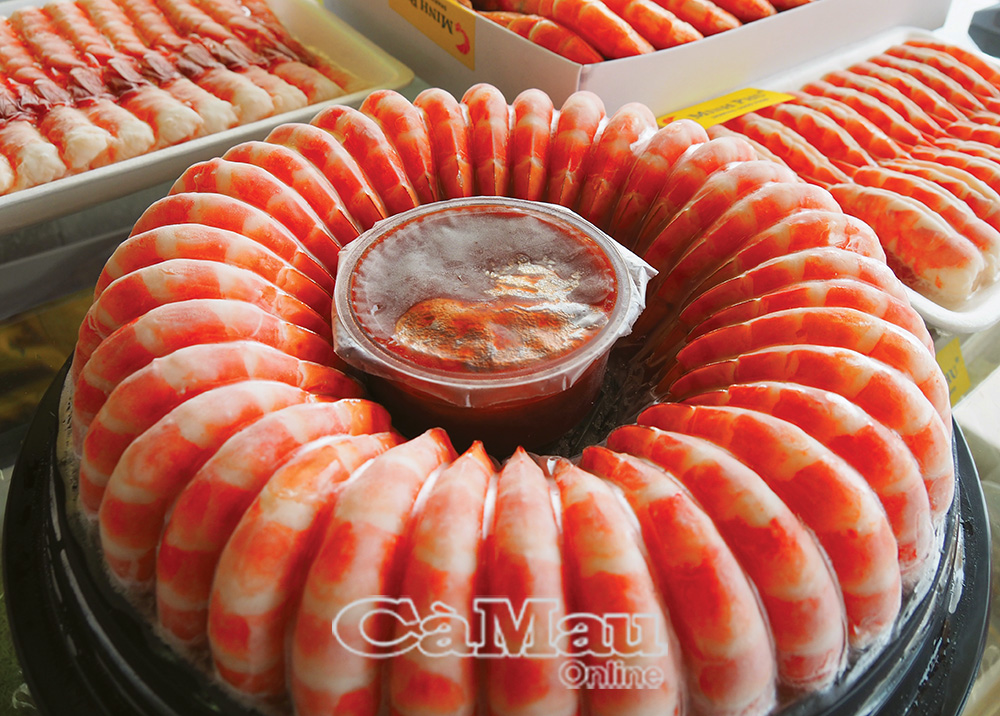 Tôm hấp cấp đông - hàng xuất khẩu của Công ty Cổ phần Tập đoàn Thuỷ sản Minh Phú.