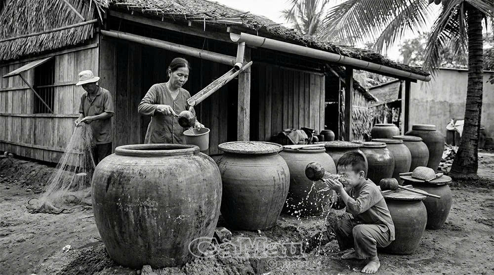 Ngay từ hồi nước nôi không thiếu, người lớn đã dạy đám trẻ chúng tôi biết quý nước và sử dụng nước sao cho tiết kiệm. Mỗi lần uống phải múc vừa đủ, thiếu mới lấy thêm. Tuổi thơ chúng tôi may mắn khi không phải chứng kiến thời tiết cực đoan như bây giờ. Ngày đó, muốn tắm thì nhảy ùm xuống sông, khát nước giữa đường cứ ghé đại nhà ai đó, vớ lấy cái gáo dừa bên lu là có ngay ngụm nước ngon lành.