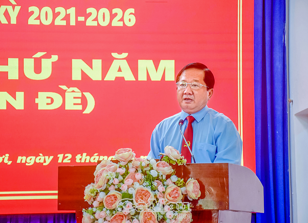 Đồng chí Lê Thanh Triều, Uỷ viên Ban Thường vụ Tỉnh uỷ, Phó Chủ tịch Thường trực Uỷ ban MTTQ Việt Nam tỉnh Cà Mau, dự và phát biểu chỉ đạo tại kỳ họp. Ảnh: VŨ LINH