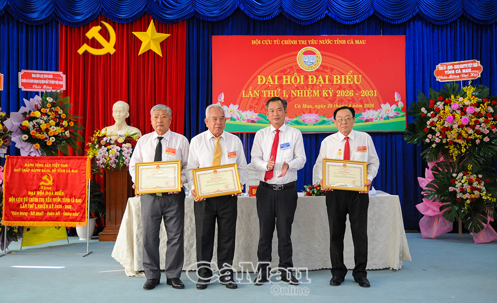 Báo Cà Mau Chiều 29/4, Hội Cựu tù chính trị yêu nước tỉnh Cà Mau long trọng tổ chức Đại hội đại biểu lần thứ I, nhiệm kỳ 2026-2031. Đây là sự kiện chính trị có ý nghĩa quan trọng, đánh dấu bước phát triển mới trong công tác tổ chức, tập hợp, phát huy vai trò của những người từng bị địch bắt tù đày trong các thời kỳ đấu tranh cách mạng.
