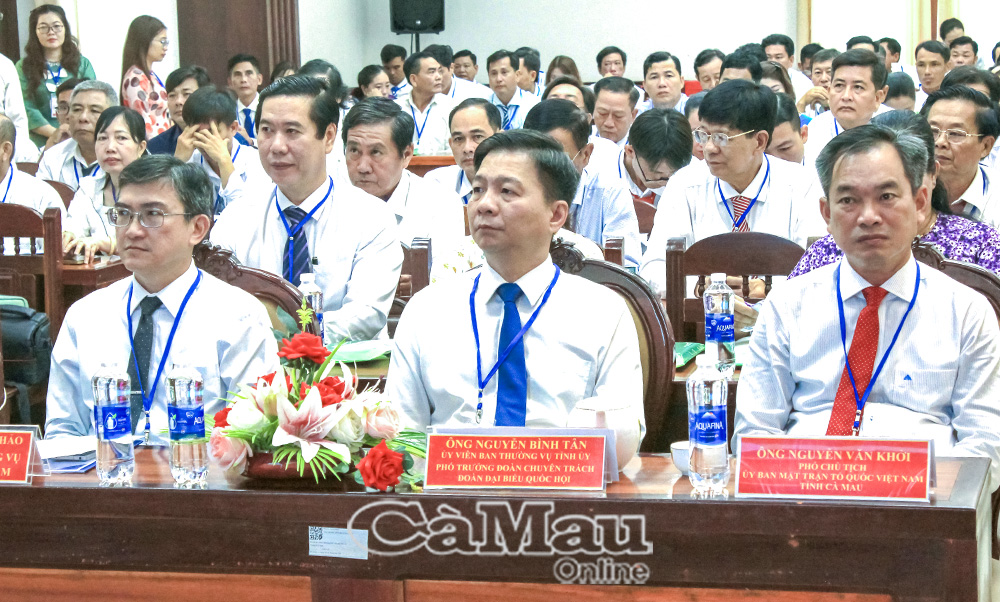 Đồng chí Nguyễn Bình Tân, Uỷ viên Ban Thường vụ Tỉnh uỷ, Phó Trưởng đoàn chuyên trách Đoàn đại biểu Quốc hội tỉnh và đồng chí Nguyễn Văn Khởi, Phó Chủ tịch Uỷ ban MTTQ Việt Nam tỉnh Cà Mau, cùng các đại biểu tham dự đại hội.
