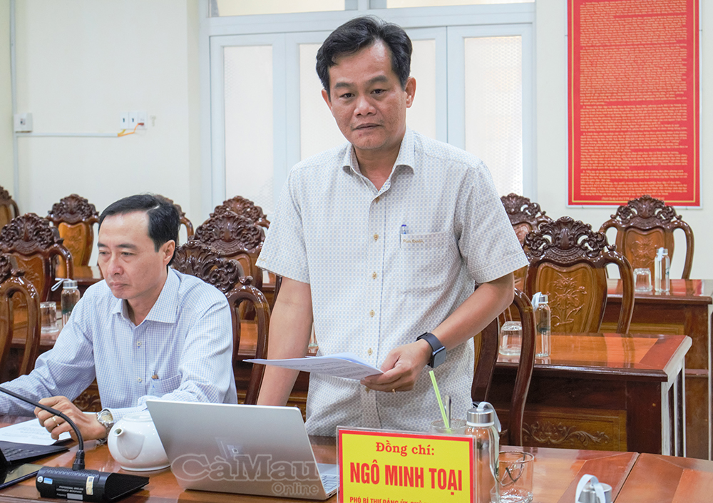 Đồng chí Ngô Minh Toại, Phó Bí thư Đảng uỷ, Chủ tịch UBND xã, Chủ tịch Uỷ ban Bầu cử Xã Phan Ngọc Hiển, kiến nghị một số vấn đề liên quan đến công tác bầu cử.
