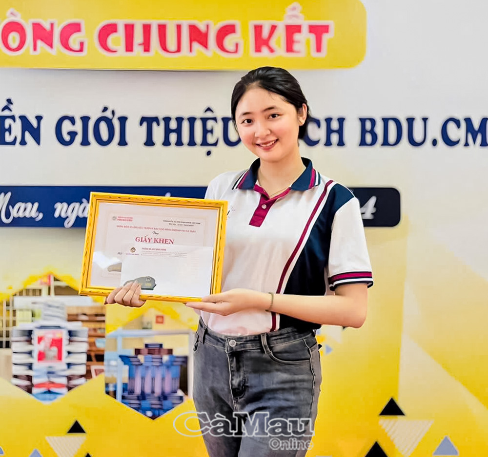 Hồng Thơ nhận giấy khen tại Hội thi Tuyên truyền giới thiệu sách do Phân hiệu tổ chức.