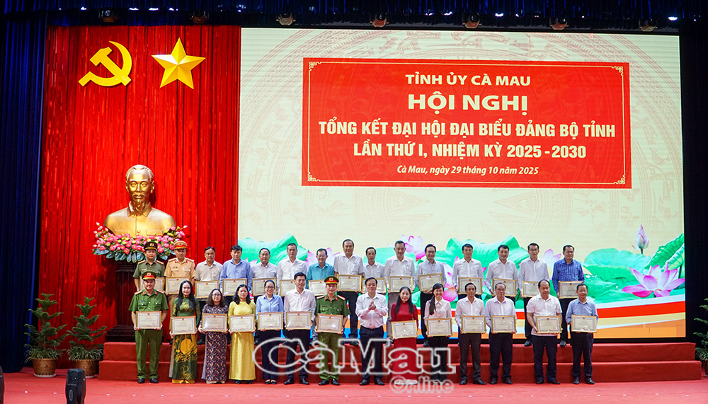 Báo Cà Mau Chiều 29/10, Tỉnh uỷ Cà Mau tổ chức Hội nghị tổng kết Đại hội đại biểu Đảng bộ tỉnh lần thứ I, nhiệm kỳ 2025-2030. Dự hội nghị có các đồng chí: Nguyễn Hồ Hải, Bí thư Tỉnh uỷ; Huỳnh Quốc Việt, Uỷ viên dự khuyết Ban Chấp hành Trung ương Đảng, Phó Bí thư Thường trực Tỉnh uỷ, Chủ tịch Uỷ ban MTTQ tỉnh; Phạm Văn Thiều, Phó Bí thư Tỉnh uỷ, Chủ tịch HĐND tỉnh; Phạm Thành Ngại, Phó Bí thư Tỉnh uỷ, Chủ tịch UBND tỉnh.