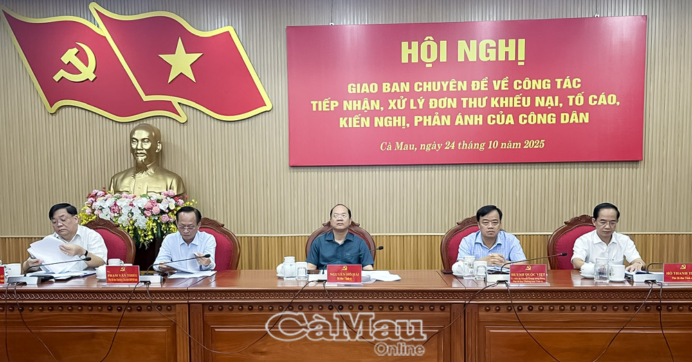 Báo Cà Mau Sáng 24/10, đồng chí Nguyễn Hồ Hải, Bí thư Tỉnh uỷ chủ trì hội nghị giao ban chuyên đề về công tác tiếp nhận, xử lý đơn thư khiếu nại, tố cáo, kiến nghị, phản ánh của công dân.