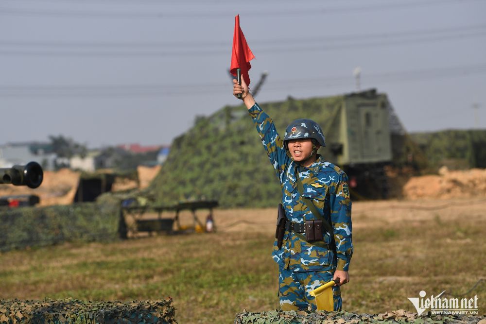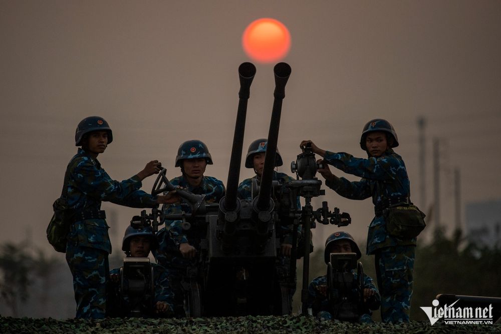 Dưới cái nắng chiều đang nhạt dần, những khuôn mặt trẻ măng bỗng chốc trở nên nghiêm nghị. Các chiến sĩ tập trung cao độ, thoăn thoắt leo lên bệ pháo, xoay vô lăng hiệu chỉnh tầm hướng với đôi tay gân guốc. Tất cả tạo nên một khung cảnh hừng hực khí thế ngay từ giây phút đầu nhập cuộc.