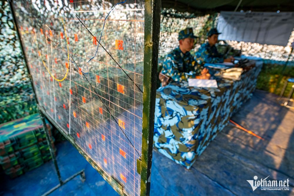 Bên trong sở chỉ huy dã chiến được đặt ở trong lòng trận địa pháo, chuông các máy điện thoại, điện đàm liên tục vang lên. Dù chỉ một tín hiệu bất thường cũng được radar quét và gửi thông tin về trung tâm.