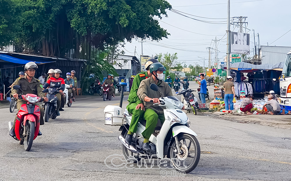 Công an xã Long Ðiền cùng các lực lượng tuần tra đảm bảo bình yên địa bàn.