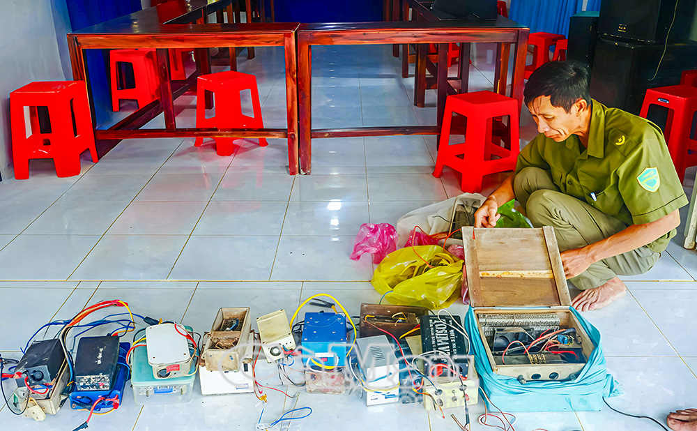 Thông qua công tác vận động, Nhân dân tự giác giao nộp cho Công an xã Khánh Bình nhiều bộ công cụ kích điện.