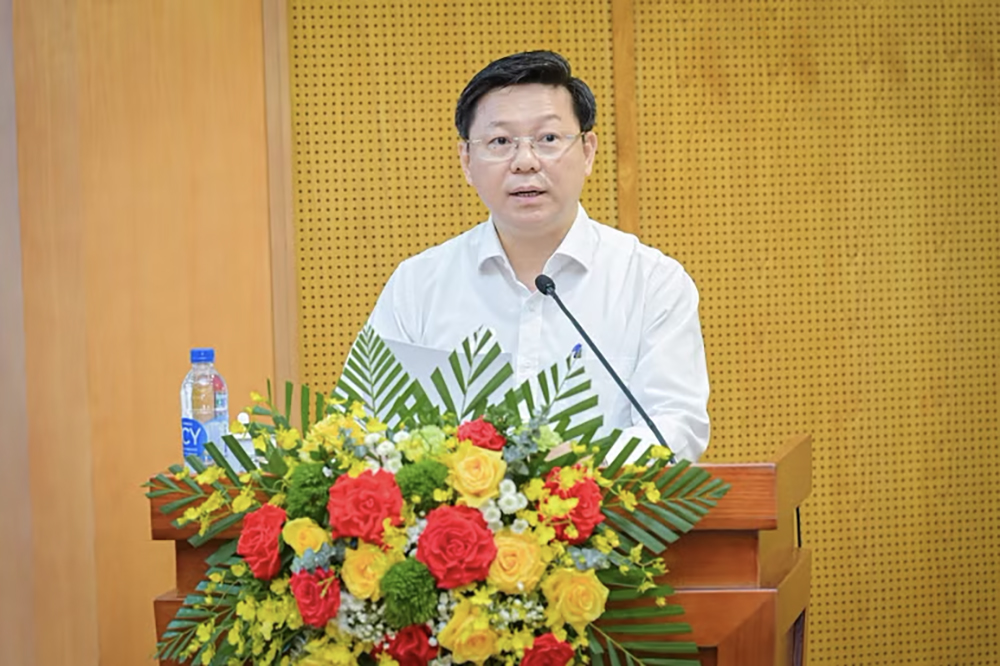 Đồng chí Trần Thanh Lâm, Uỷ viên Ban Chấp hành Trung ương Đảng, Phó Trưởng ban Tuyên giáo và Dân vận Trung ương, phát biểu tại hội nghị. (Ảnh: BẢO LONG/Báo Nhân dân)