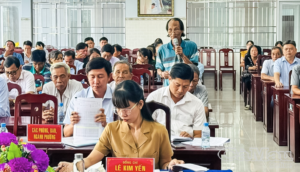 Tại đây, cử tri bày tỏ sự đồng thuận với những kết quả đạt được của chính quyền địa phương hai cấp, đồng thời thẳng thắn phản ánh những hạn chế ở cơ sở. Nhiều ý kiến tập trung vào các nhóm vấn đề nổi bật như: bồi thường, giải phóng mặt bằng cao tốc Cà Mau - Đất Mũi; tình trạng đường giao thông nông thôn xuống cấp, ngập úng do triều cường; việc vận hành các cống tiểu vùng; thiếu thuốc bảo hiểm y tế tại một số cơ sở y tế; chậm chi trả chính sách người có công; lấn chiếm hành lang lộ giới; khai thác trái phép tài nguyên đất dưới lòng sông; giải pháp chống tràn, sạt lở.