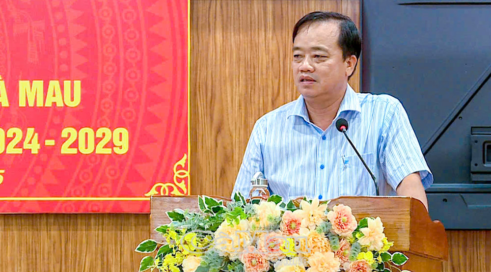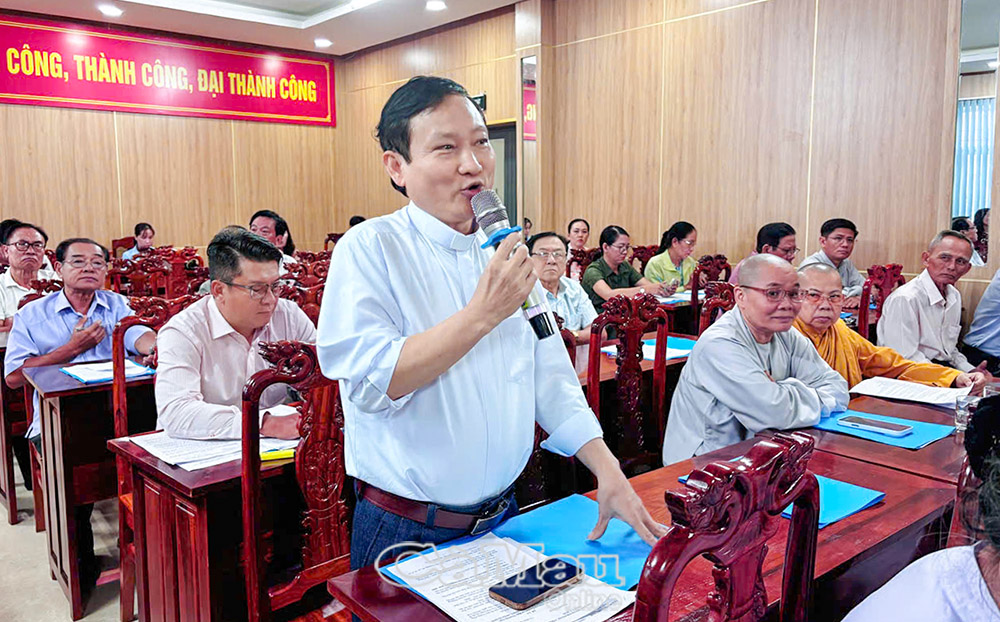 Đồng chí Lê Thanh Triều, Phó Chủ tịch Thường trực Uỷ ban MTTQ Việt Nam tỉnh Cà Mau, gợi mở nhiều nội dung thảo luận tại hội nghị.
