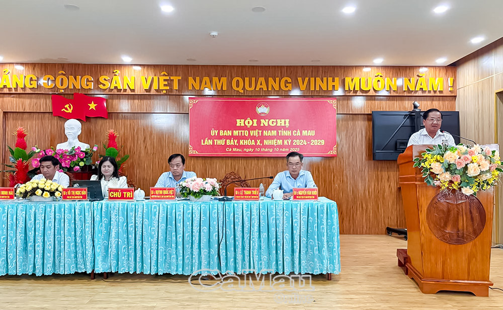 Chiều 10/10, Uỷ ban MTTQ Việt Nam tỉnh Cà Mau tổ chức Hội nghị lần thứ Bảy, khóa X, nhiệm kỳ 2024-2029, đánh giá kết quả hoạt động thời gian qua và chuẩn bị cho Đại hội đại biểu MTTQ Việt Nam tỉnh lần thứ I, nhiệm kỳ 2025-2030.