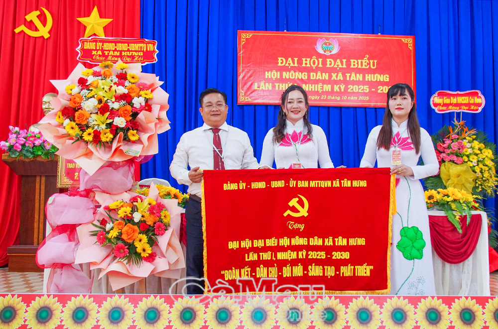 Báo Cà Mau Phát biểu chỉ đạo tại Đại hội đại biểu Hội Nông dân xã Tân Hưng lần thứ I, nhiệm kỳ 2025-2030 vào chiều 23/10, đồng chí Đỗ Hoàng Tuấn, Phó Chủ tịch Thường trực, Trưởng Ban Công tác Nông dân (Hội Nông dân tỉnh Cà Mau) đề nghị Hội Nông dân xã tiếp tục phát huy vai trò nòng cốt của giai cấp nông dân trong phát triển nông nghiệp hiện đại, đẩy mạnh ứng dụng khoa học - công nghệ, chuyển đổi số trong sản xuất, nhân rộng các mô hình kinh tế hợp tác, góp phần xây dựng nông thôn mới nâng cao, kiểu mẫu.
