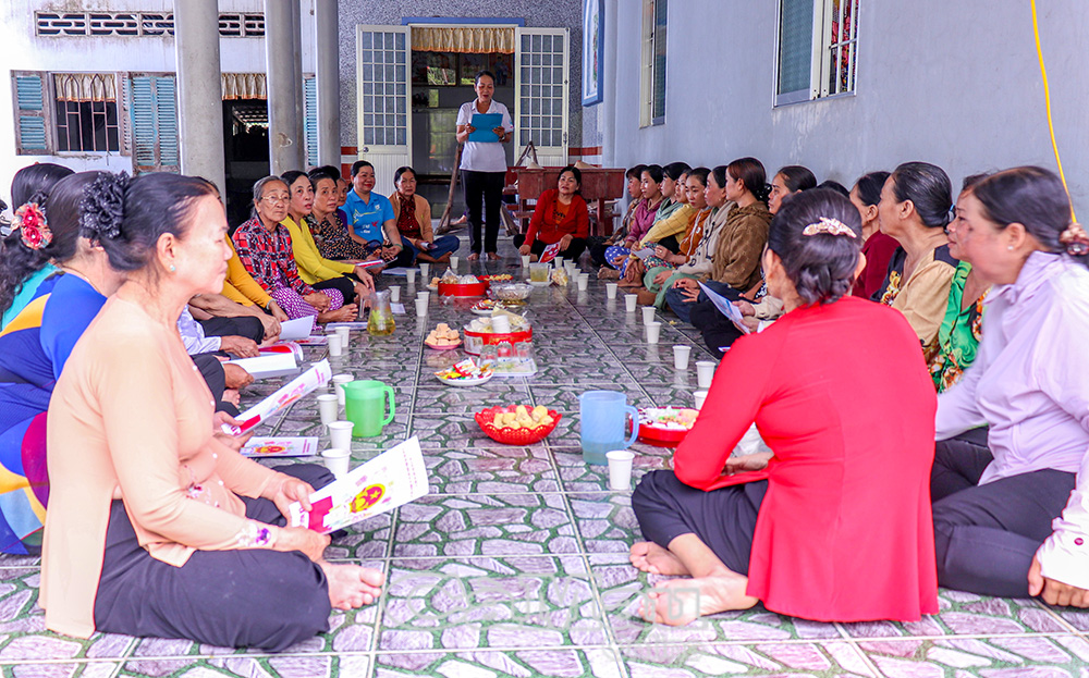 Chị Nguyễn Thị Xuân Hằng, Chi hội trưởng Chi hội Phụ nữ Khóm 28, triển khai các nội dung liên quan đến bầu cử cho hội viên.