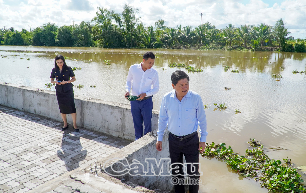 Ông Lê Văn Sử, Phó Chủ tịch UBND tỉnh, kiểm tra công trình chống sạt lở kênh xáng Bạc Liêu - Cà Mau khu vực Giá Rai.