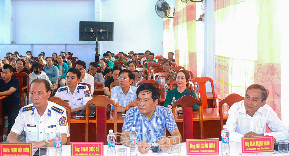 Đến dự có đồng chí Nguyễn Văn Phụng, Phó Trưởng Ban Nội chính Tỉnh ủy; Thượng tá Phan Oanh Liệt, Phó Trưởng phòng An ninh điều tra, Công an tỉnh; đồng chí Trần Trọng Nhân, Phó Chánh án TAND tỉnh; đồng chí Bùi Xuân Thao, Trưởng phòng Phóng viên Báo Công lý, cơ quan ngôn luận của TAND tối cao; Đại tá Phạm Viết Huân, Trưởng phòng Pháp luật, Bộ Tư lệnh Vùng Cảnh sát biển 4; cùng đại diện các ban, ngành địa phương và hơn 200 người dân, ngư dân xã Khánh Lâm.