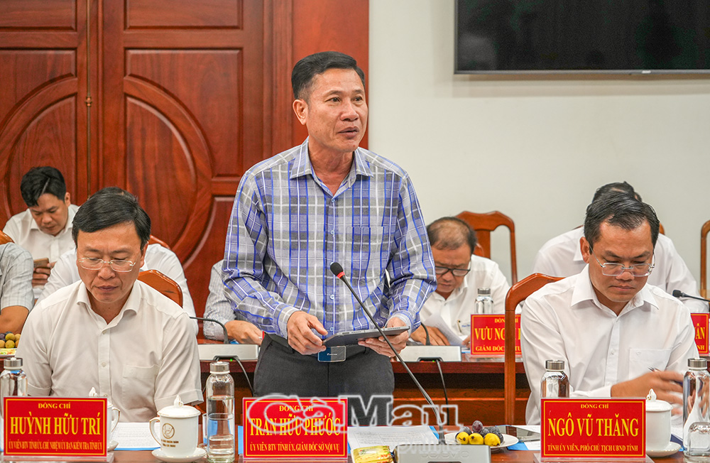 Uỷ viên Ban Thường vụ Tỉnh uỷ, Giám đốc Sở Nội vụ Trần Hữu Phước báo cáo tiến độ công tác bầu cử của tỉnh Cà Mau.