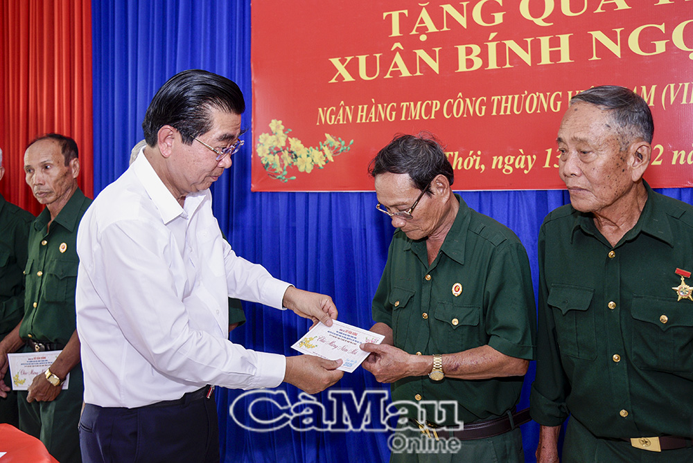 Ngày 12/2, đoàn công tác Tỉnh uỷ - HĐND - UBND - Uỷ ban MTTQ Việt Nam tỉnh Cà Mau do đồng chí Lê Văn Sử, Phó Chủ tịch UBND tỉnh làm trưởng đoàn đến thăm, chúc Tết các gia đình có công với cách mạng tại các xã Tân Ân, Cái Nước và Hưng Mỹ.