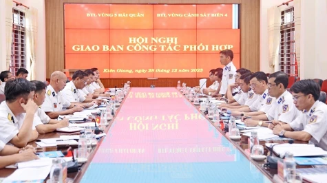 Chiều 28/12, tại TP Phú Quốc, tỉnh Kiên Giang,Bộ Tư lệnh Vùng Cảnh sát biển 4 và Bộ Tư lệnh Vùng 5 Hải quân tổ chức Hội nghị giao ban đánh giá kết quả công tác phối hợp hoạt động năm 2023.