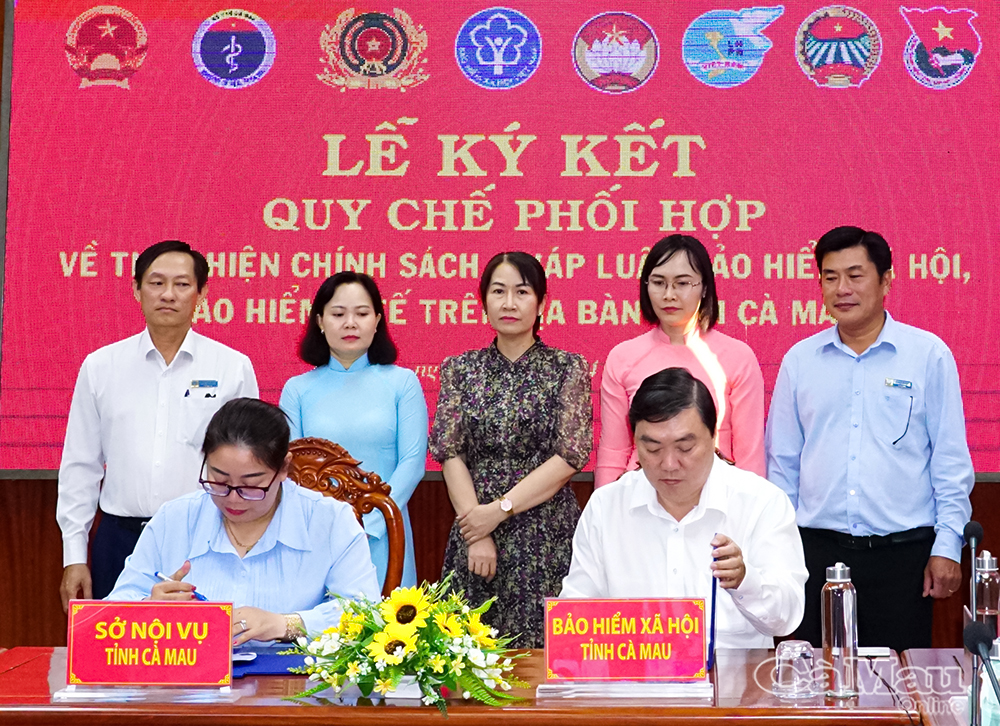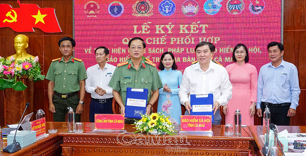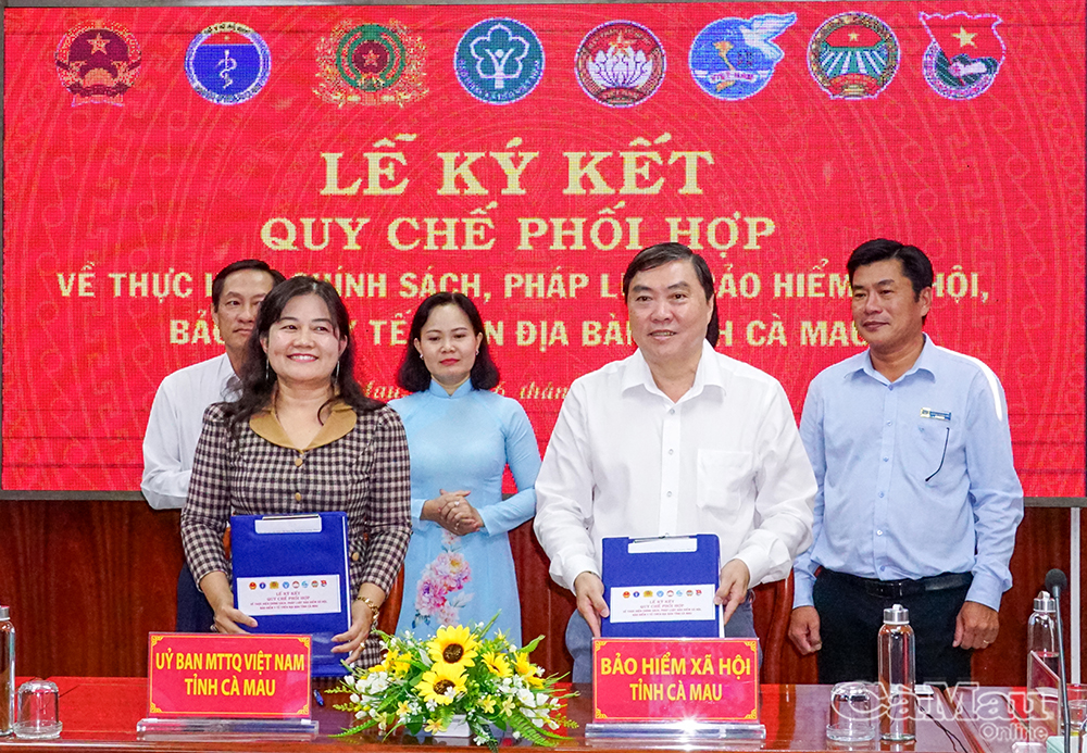 Đại diện lãnh đạo BHXH tỉnh ký kết quy chế phối hợp thực hiện chính sách an sinh với Uỷ ban MTTQ Việt Nam tỉnh Cà Mau.