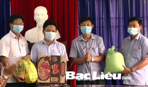 Phòng VH-TT huyện Phước Long tặng quà cho lực lượng làm nhiệm vụ phòng, chống dịch COVID-19. Ảnh: H.T