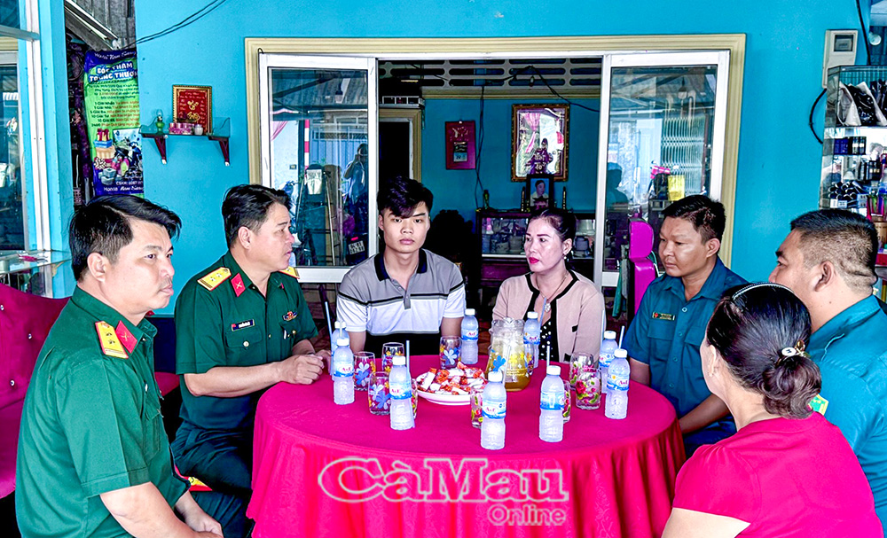 Đại diện Ban Chỉ huy PTKV 1 - Bạc Liêu cùng Hội đồng NVQS xã Vĩnh Mỹ đến thăm, động viên gia đình thanh niên Đoàn Minh Khánh (Ấp 17, xã Vĩnh Mỹ), công dân trúng tuyển NVQS năm 2026.