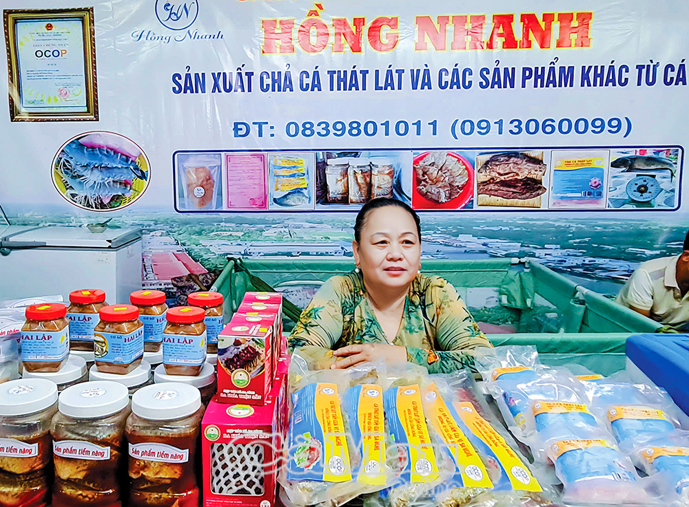 Sản phẩm chả cá thác lác của Cơ sở Hồng Nhanh tham gia Hội chợ Xúc tiến thương mại sản phẩm OCOP tại phường Bạc Liêu.