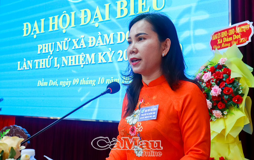 Phát biểu chỉ đạo, Chủ tịch Hội LHPN tỉnh Cà Mau Lê Thị Ngọc Linh, biểu dương những kết quả nổi bật của phong trào phụ nữ xã Đầm Dơi. Đồng chí đề nghị Hội tiếp tục đổi mới phương thức hoạt động, ứng dụng chuyển đổi số, phát huy vai trò nòng cốt trong các phong trào thi đua, đồng thời chăm lo tốt hơn đời sống vật chất, tinh thần cho phụ nữ và trẻ em, đặc biệt chú trọng bồi dưỡng đội ngũ cán bộ nữ kế thừa có năng lực, tâm huyết.