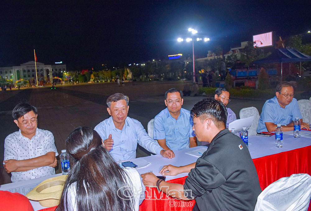 Đồng chí Hồ Trung Việt, Uỷ viên Ban Thường vụ, Trưởng Ban Tuyên giáo và Dân vận Tỉnh uỷ và đồng chí Ngô Vũ Thăng, Phó Chủ tịch UBND tỉnh dự buổi phúc khảo chương trình nghệ thuật.