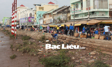 (BL-NQ) Sáng 20/2, UBND Phường 3 (TP. Bạc Liêu) tổ chức dọn vệ sinh khu vực bờ kè chợ nông sản, thực phẩm trên đường Điện Biên Phủ.