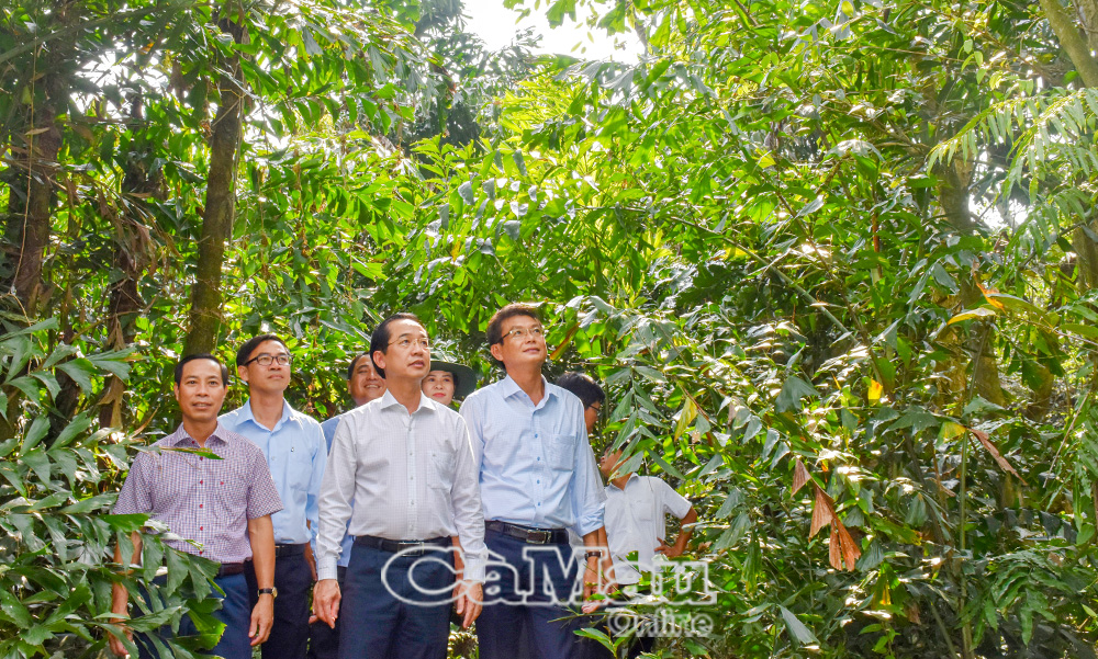Trước buổi làm việc, đồng chí Hồ Thanh Thuỷ cùng đoàn công tác đã tham quan, khảo sát thực tế tại vườn cò của ông Nguyễn Văn Quân, thuộc ấp Long Hoà.
