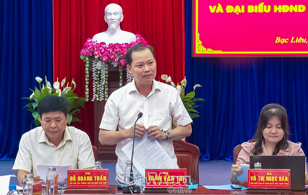 Phó Giám đốc Công an tỉnh Trần Văn Thi lưu ý phường Bạc Liêu cần bảo đảm tốt an ninh trật tự, an toàn xã hội và phòng, chống các hành vi vi phạm pháp luật về bầu cử.