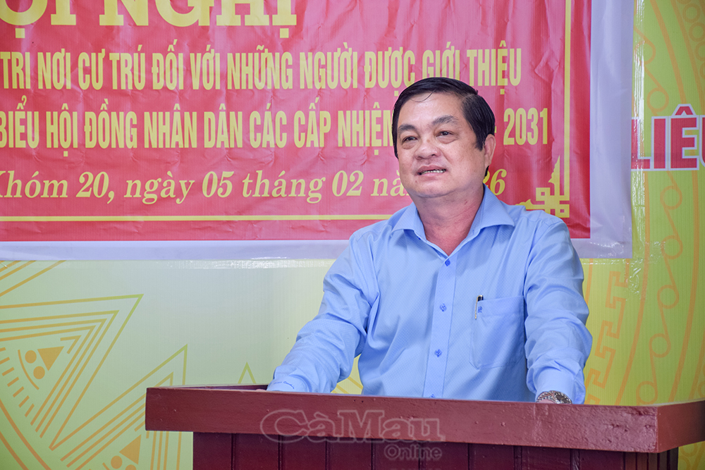 Báo Cà Mau Ngày 5/2, Uỷ ban MTTQ Việt Nam phường Bạc Liêu tổ chức Hội nghị lấy ý kiến nhận xét của cử tri nơi cư trú đối với những người được giới thiệu ứng cử đại biểu HĐND các cấp nhiệm kỳ 2026-2031 trên địa bàn Khóm 20. Dự hội nghị có đồng chí Huỳnh Chí Nguyện, Phó Chủ tịch UBND tỉnh, người được giới thiệu ứng cử đại biểu HĐND tỉnh, cùng 15 người ứng cử đại biểu HĐND các xã, phường.