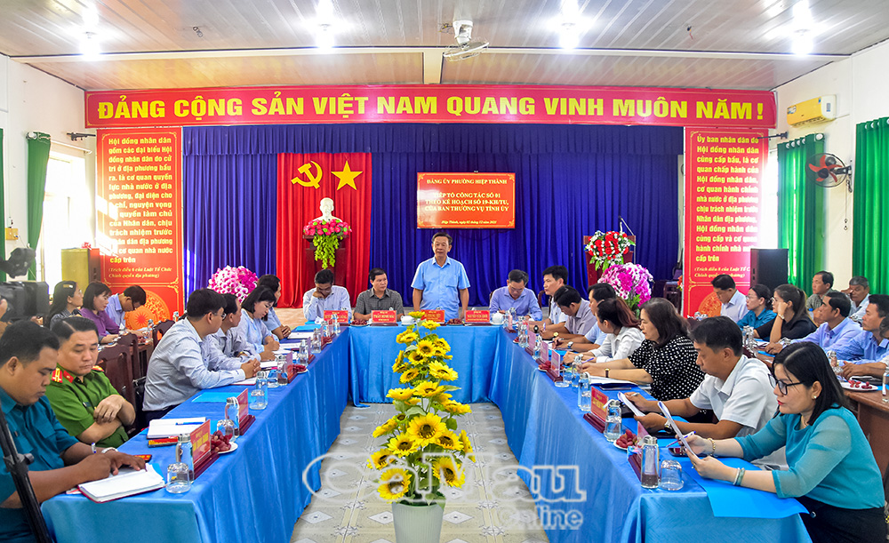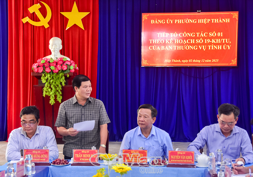 Báo Cà Mau Chiều 2/12, Tổ công tác số 1 của Tỉnh uỷ Cà Mau do đồng chí Hồ Trung Việt, Uỷ viên Ban Thường vụ, Trưởng Ban Tuyên giáo và Dân vận Tỉnh uỷ làm Tổ trưởng, kiểm tra việc quán triệt và thực hiện các nghị quyết của Bộ Chính trị tại phường Hiệp Thành.